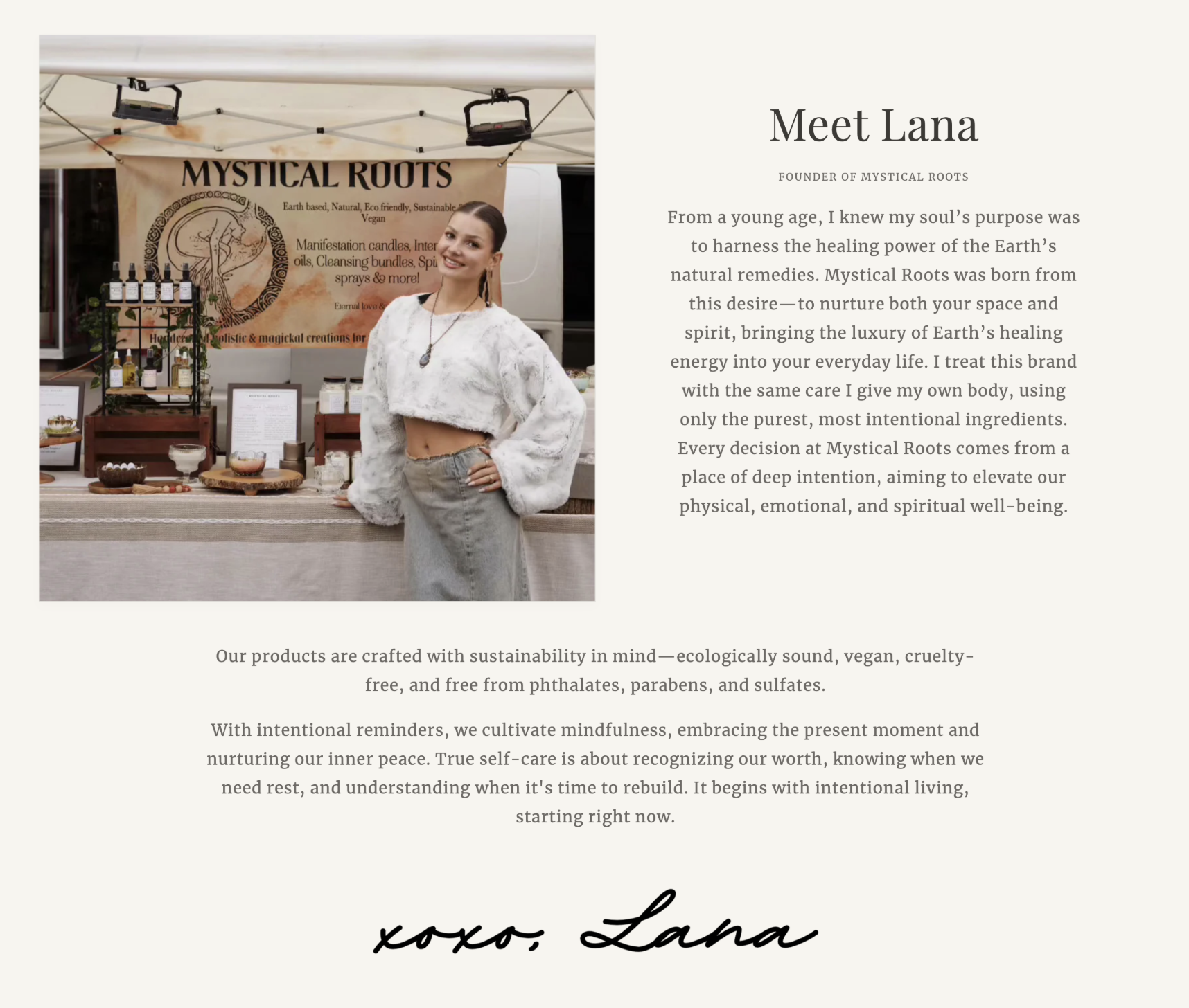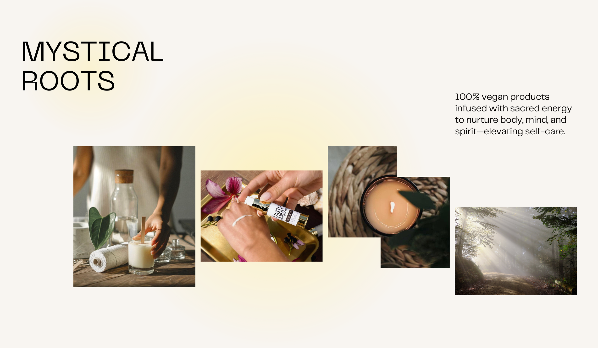 Mystical Roots is a soulful brand offering high-vibrational skincare, candles, and sprays made with natural, intentional ingredients. I partnered with the founder to bring her vision to life by designing a calming, Earth-inspired website on Shopify that reflects the brand’s spiritual and holistic values. The overall design is grounded in an earthy palette while staying minimal and intuitive to let the product offerings and brand story shine through. My work included website design, product descriptions, branded graphics, light SEO, and custom app integration to support a personalized candle experience for customers.